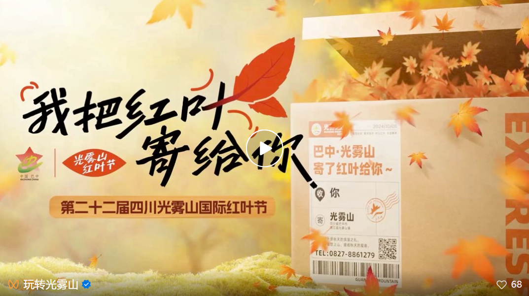 1.这个秋季光雾山开启“我把红叶寄给你”全球宣传活动,向与巴中有渊源有贡献代表人士和巴中在外打拼乡友,寄出“红叶之邀”。