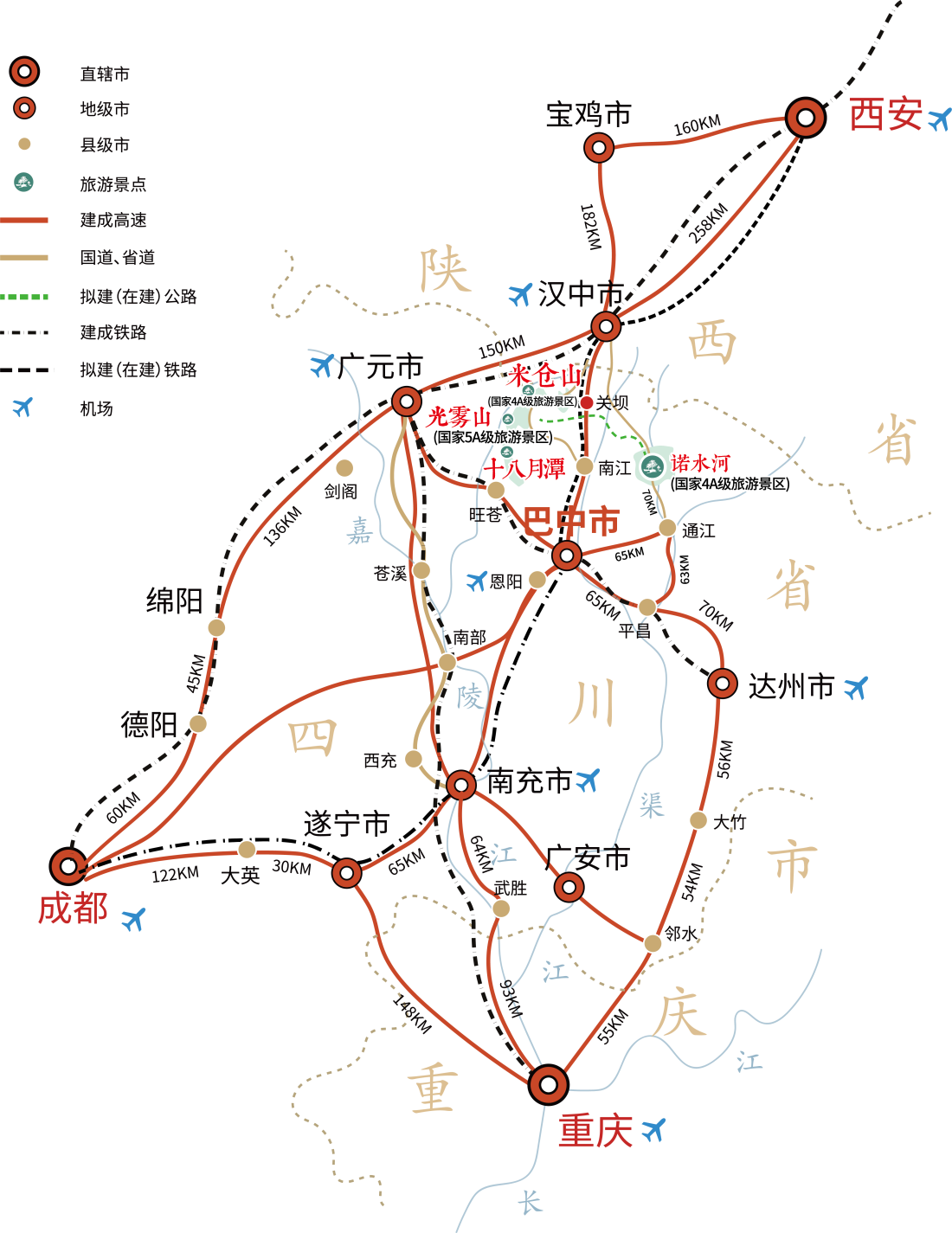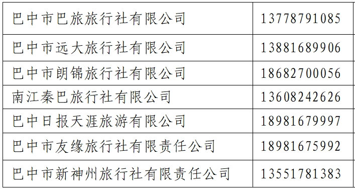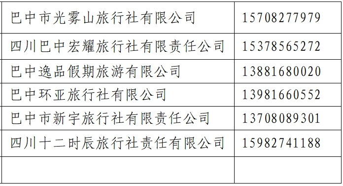2.重庆北站(重庆西站)一巴中站一光雾山旅游景区、米仓山旅游景区、十八月潭景区