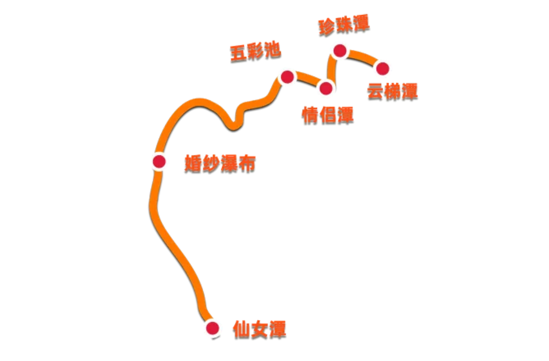 💗赏红叶线路:云梯潭——珍珠潭——情侣潭——五彩池——婚纱瀑布——仙女潭(推荐自上而下游览)