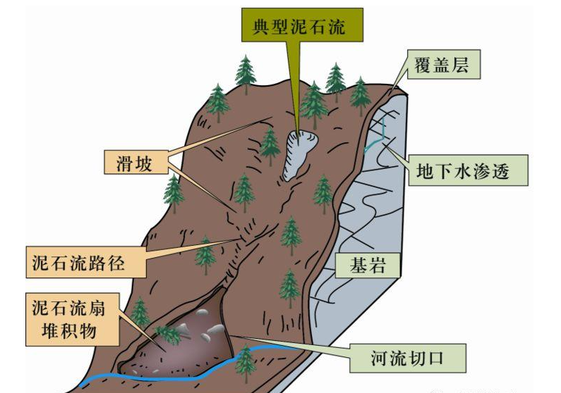 另外,需要有丰富的松散物质以及有利于把上述松散物质和水源集中的陡峻地形和地貌。