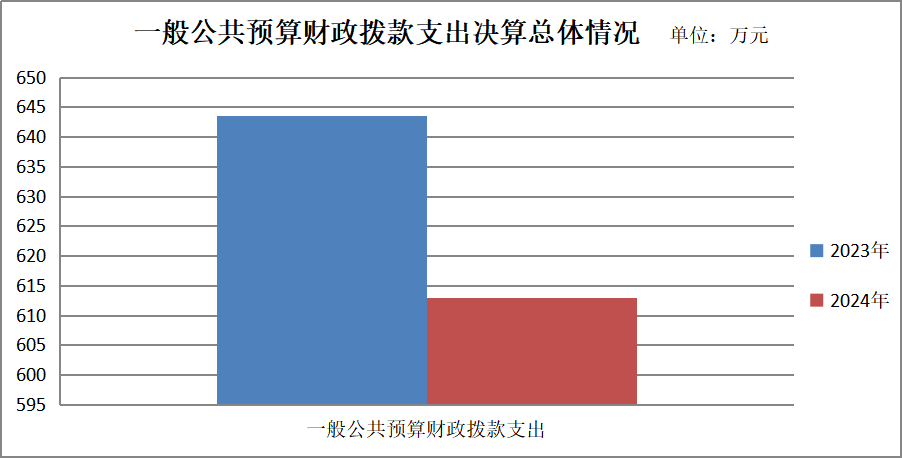 2024年度一般公共预算财政拨款支出612.9万元,占本年支出合计的100%。与2023年度相比,一般公共预算财政拨款支出减少30.65万元,下降4.76%。主要变动原因是: 2024年在职人员减少5人。