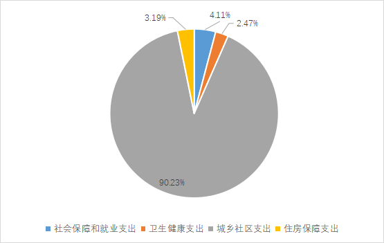 2024年度一般公共预算财政拨款支出416.34万元,主要用于以下方面:社会保障支出17.10万元,占4.11%;卫生健康支出10.29万元,占2.47%;城乡社区支出375.69万元,占90.23%;住房保障支出13.27万元,占3.19%。