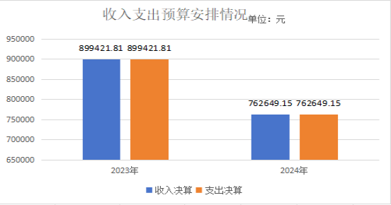 2024年度收入、支出总计均为76.26万元。与2023年度相比,收入、支出总计各减少13.68万元,下降15.21%。主要原因是严格落实党政机关过紧日子要求,办公费、差旅费、其他商品和服务支出等公用经费支出下降。