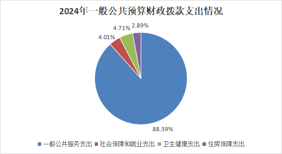 2024年度一般公共预算财政拨款支出75.38万元,主要用于以下方面:一般公共服务支出66.62万元,占88.39%;社会保障和就业支出3.03万元,占比4.01%;卫生健康支出3.55万元,占比4.71%;住房保障支出2.18万元,占比2.89%。
