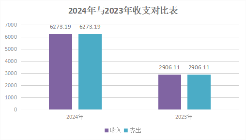 2024年度收入、支出总计均为6273.19万元。与2023年度相比,收入、支出总计各增加3367.08万元,增长53.67%。主要变动原因是增加原因为项目经费增加,新增基础建设。