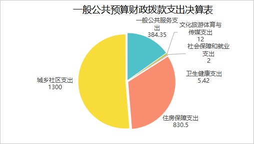 2024年度一般公共预算财政拨款支出2498.26万元,主要用于以下方面:一般公共服务支出348.34万元,占13.94%;文化旅游体育与传媒支出12万元,占0.48%;社会保障和就业支出2万元,占0.08%;卫生健康支出5.42万元,占0.22%;住房保障支出830.5万元,占33.24%;城乡社区支出1300万元,占52.04%。