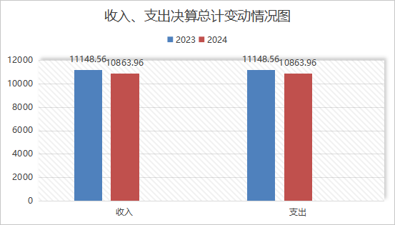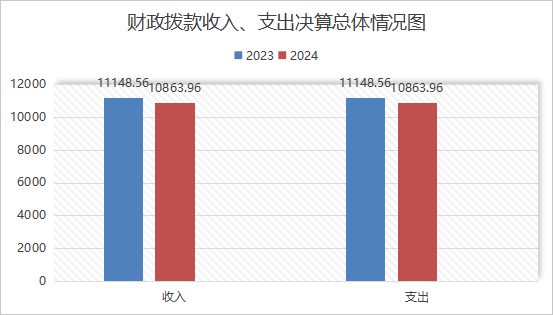 2024年度财政拨款收入、支出总计均为10863.96万元。与2023年度相比,财政拨款收入总计、支出总计各284.6万元,下降2.55%。主要变动原因是项目减少