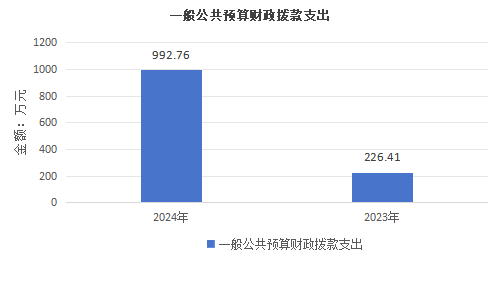 2024年度一般公共预算财政拨款支出992.76万元,占本年支出合计的占9.14%。与2023年度相比,一般公共预算财政拨款支出增加766.35万元,增长338.48%。主要变动原因是项目增加。