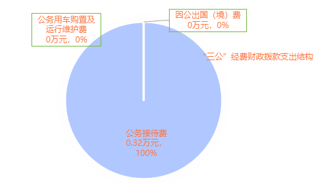 2024年度“三公”经费财政拨款支出决算中,因公出国(境)费支出决算0万元,占0%;公务用车购置及运行维护费支出决算0万元,占0%;公务接待费支出决算0.32万元,占100%。具体情况如下: