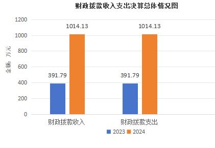 2024年度财政拨款收入、支出总计均为1014.13万元。与2023年度相比,财政拨款收入总计、支出总计各增加622.34万元,增长158.84%。主要变动原因是项目增多。