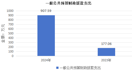 2024年度一般公共预算财政拨款支出907.59万元,占本年支出合计的89.49%。与2023年度相比,一般公共预算财政拨款支出增加730.53万元,增长412.59%。主要变动原因是项目增加。